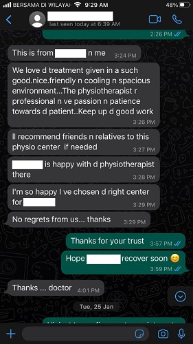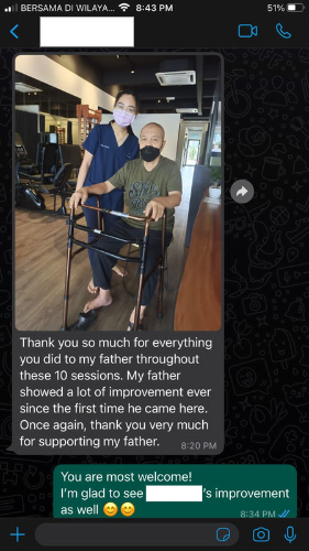 My 88yo dad Mr Tan E K needed physio treatments after his stroke. My sister’s therapist Ms Chen Xin was so nice and helpful in arranging for the male therapist Mr Chow to make house calls.